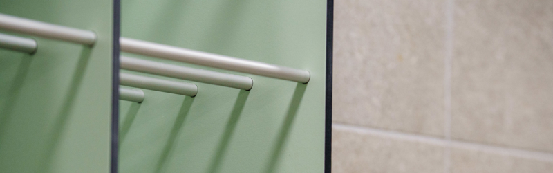 Du låser dit skab ved hjælp af dit indgangsarmbånd.